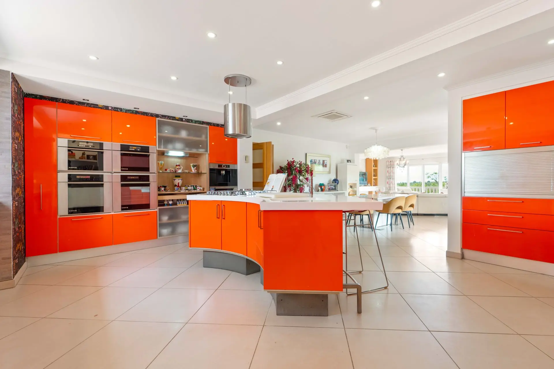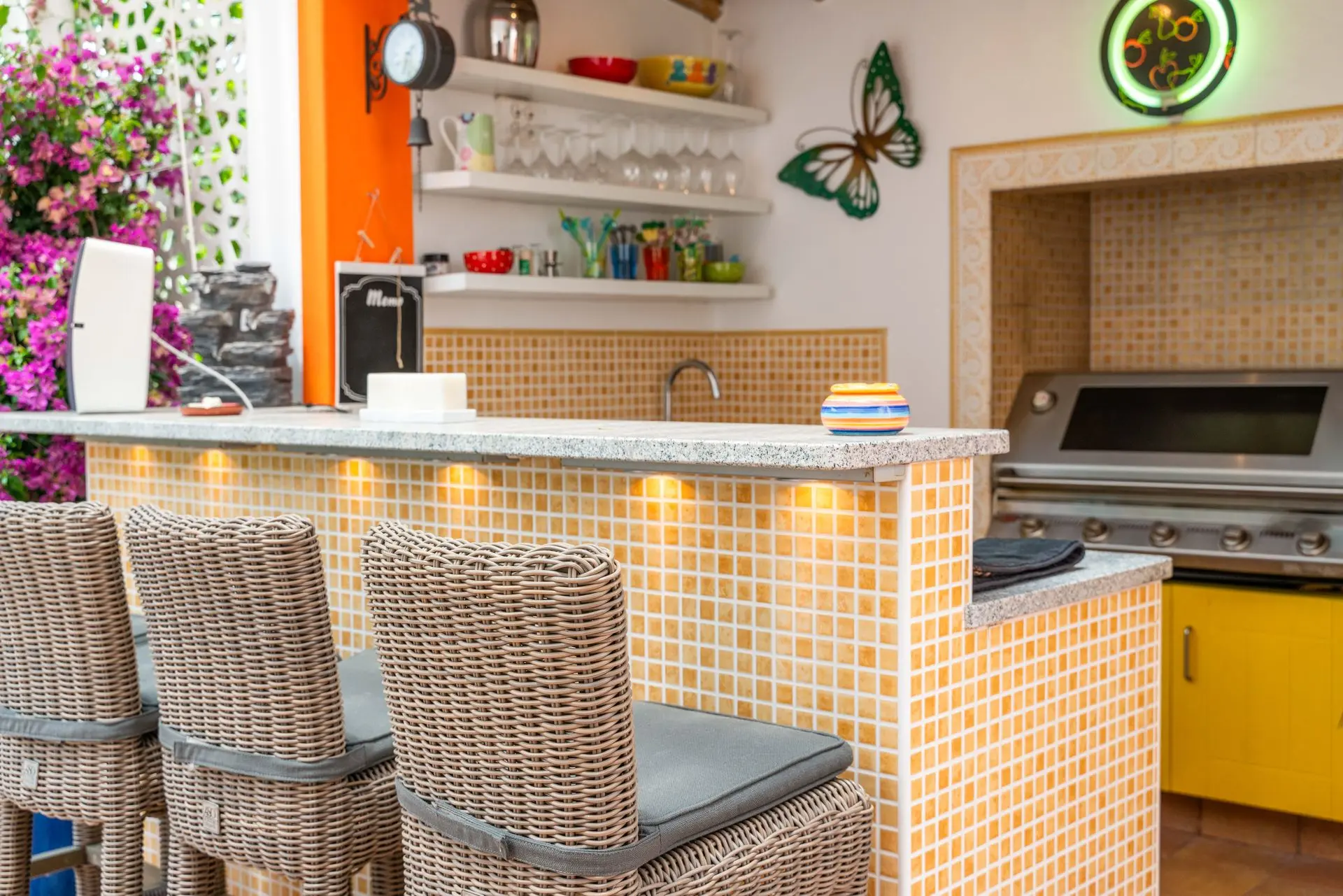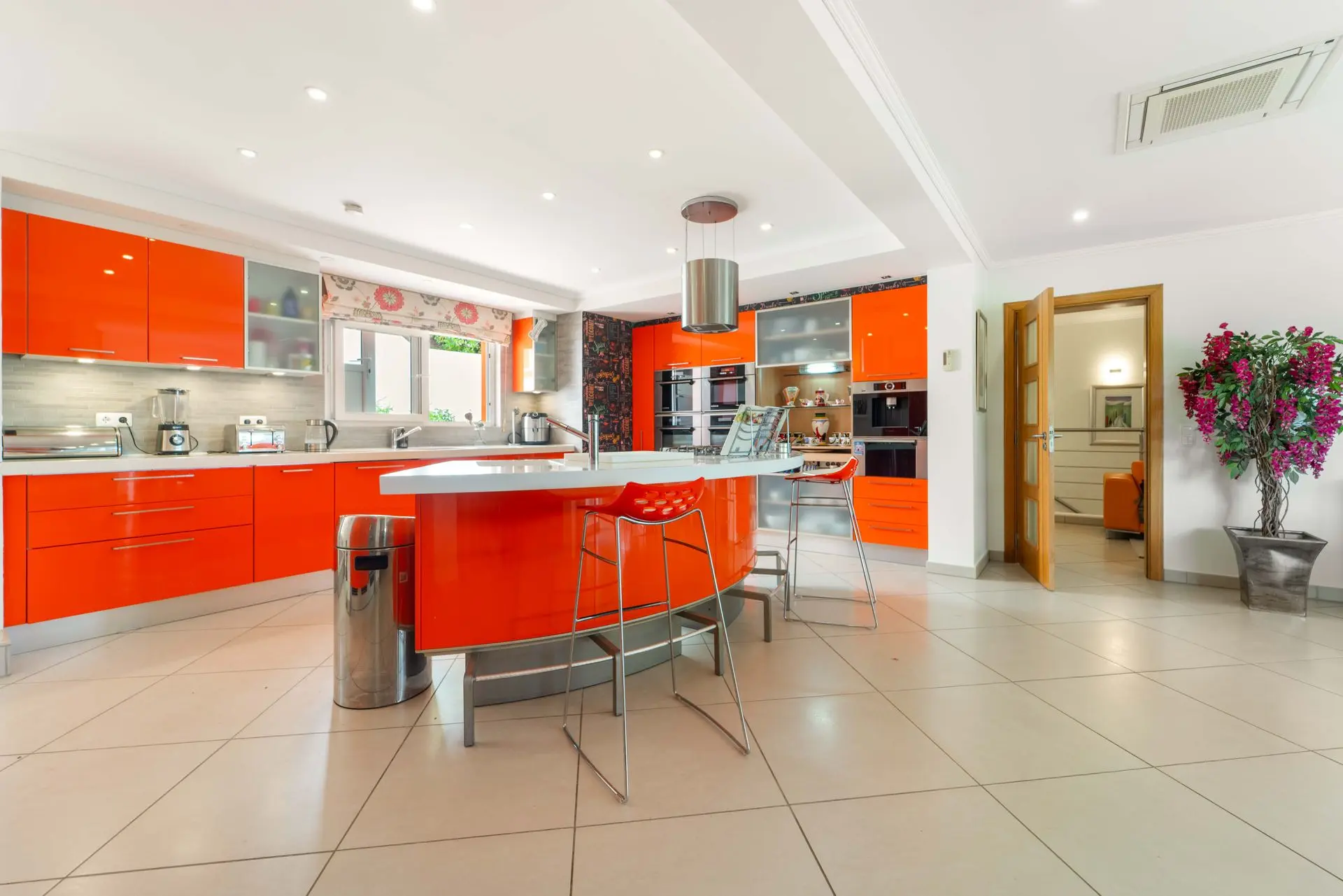 This contemporary kitchen perfectly blends form and function — a true centerpiece of the villa, ideal for both casual dining and gourmet entertaining.