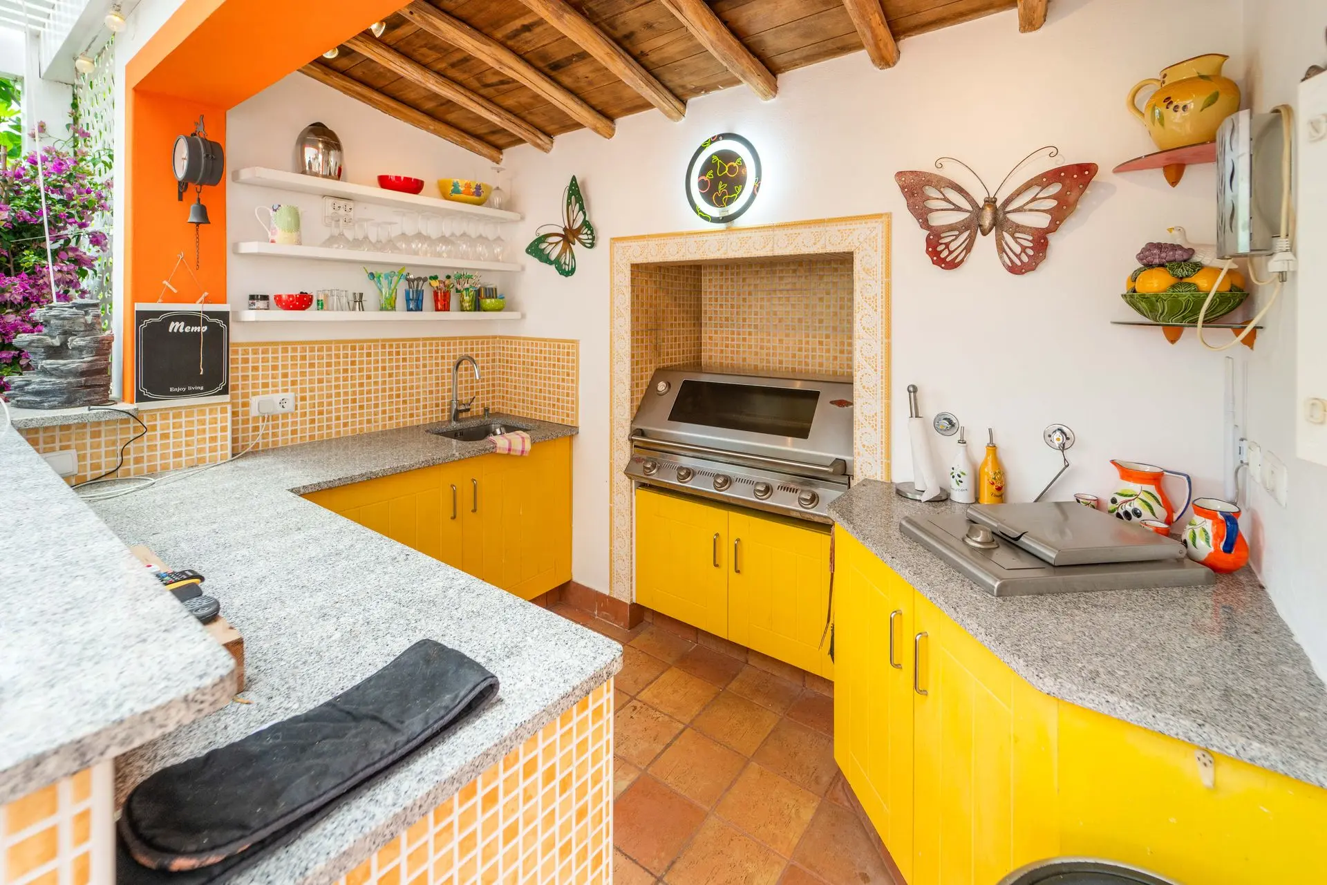 This section of the villa can be easily reconfigured into a self-contained two-bedroom, one-bathroom apartment—ideal for guest stays, visiting family, or independent living arrangements. With just the closure and locking of an adjoining door, it becomes a completely private, fully independent space with its own kitchen, courtyard access, and all necessary amenities.