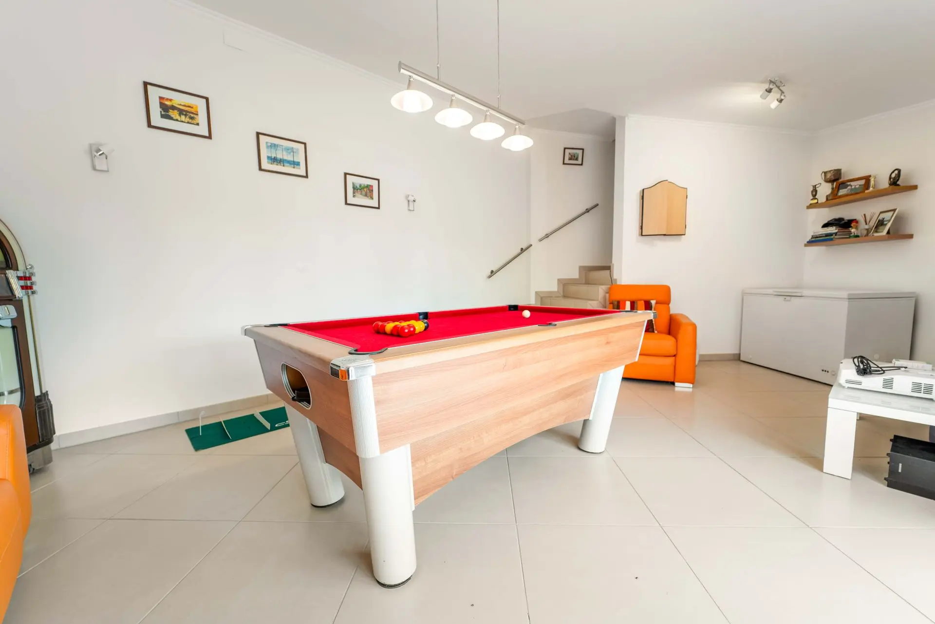 The lower level connects directly to the games and barbecue terrace, offering seamless movement between the indoor leisure spaces and the outdoor entertainment areas — perfect for gatherings or relaxed family evenings.
